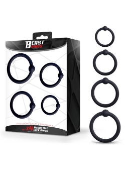 Set de 4 anillos con medidas diferentes para diferentes partes del pene y para disfrutar de placeres diferentes.